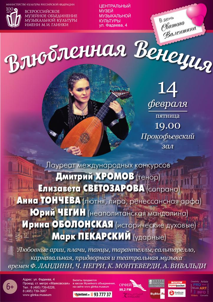 Музыка XIV—XVII вв. будет представлена в исполнении солиста Московского музыкального театра «Геликон-опера», лауреата международных конкурсов тенора Дмитрия Хромова, замечательных музыкантов Анны Тончевой, Елизаветы Светозаровой, Юрия Чегина, Ирины Оболонской.