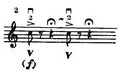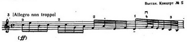 Наибольшую трудность представляет упражнение на двух струнах, где переходы со струны на струну следует осуществлять за счетповорота кисти: