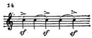 Достигнув хорошего звукового качества штриха, это упражнение следует играть с противоположным направлением движения смычка.