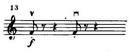 Работу над штрихом следует начинать после тщательной отработки указанных выше упражнений на spiccato. Важно выработать также упражнение на «укол» струны, которое по звуковому результату должно быть родственно приводимым ранее упражнениям на импульс атаки звука и «укол» струны в martele. Однако само движение здесь необходимо совершать четким изолированным движением кисти «вверх смычком» (с элементом пальцевого штриха), как бы отрывающим смычок от струны и быстро возвращающим в исходное положение, в котором кисть должна быть заметно согнута.