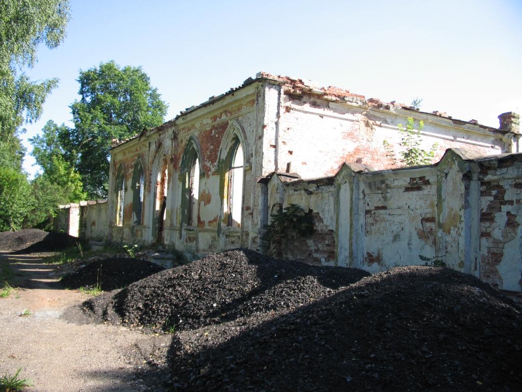 Искомое село мы нашли.Картинка стоит до сих пор перед глазами. Разрушенная кирха, внутри заполненная почти по щиколотку бутылками, рядом разбитый дом пастора. Прекрасные. надежные строения. В кирхе, похоже, с военных времен не течет крыша. Мне показалось, что балки балкона-хоров. где находился орган, были просто срезаны пилой типа "дружба" и все хозяйство рухнуло оземь.