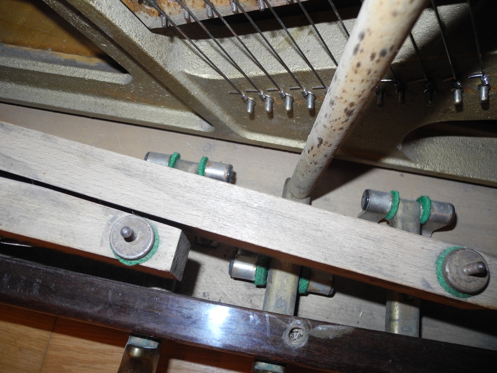 Похоже фортепиано где-то зазимовало.. Вот так западают клавиши (5-6 клавиш):При нажатии правой педали, её штанга трется о штангу левой педали со стуком:А вот фото остальных элементов: