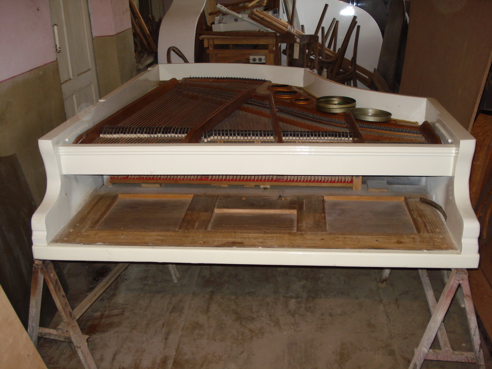 А у рояля все оригинальное, кроме басовых струн,гладких струн, куска вирбельбанка , накладок на клавишах, сукна.