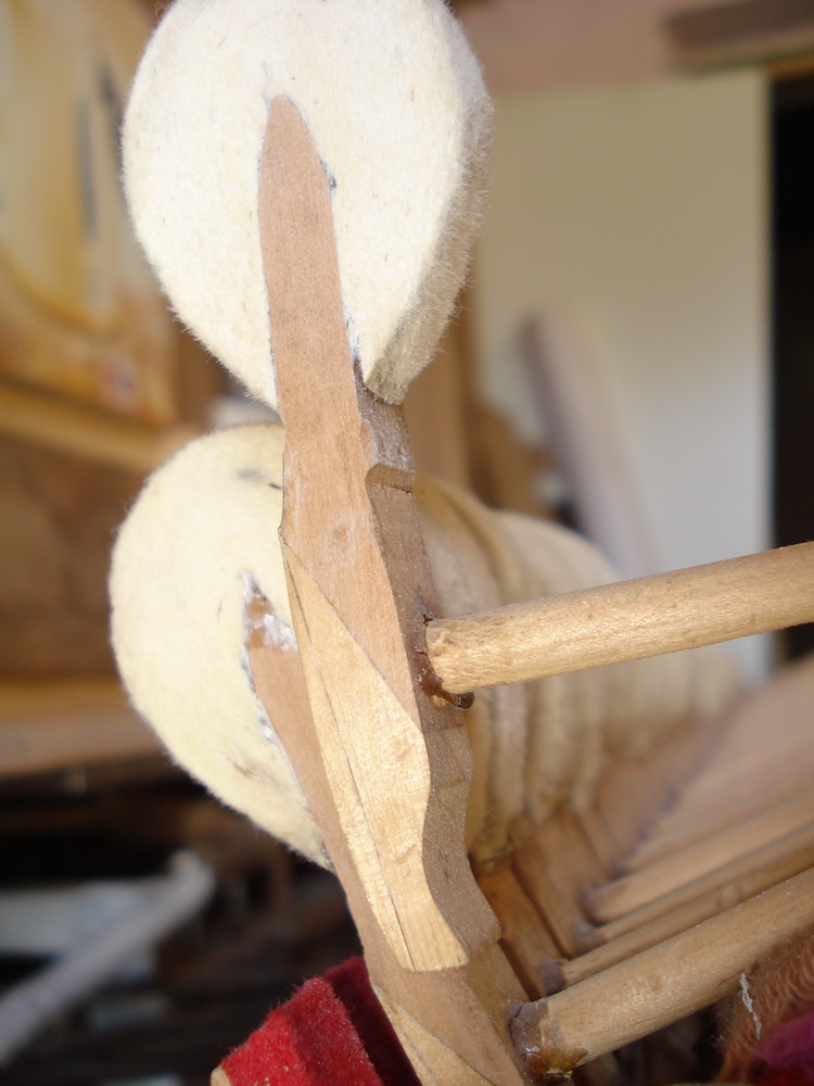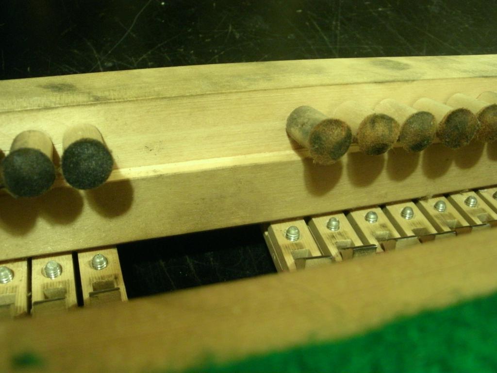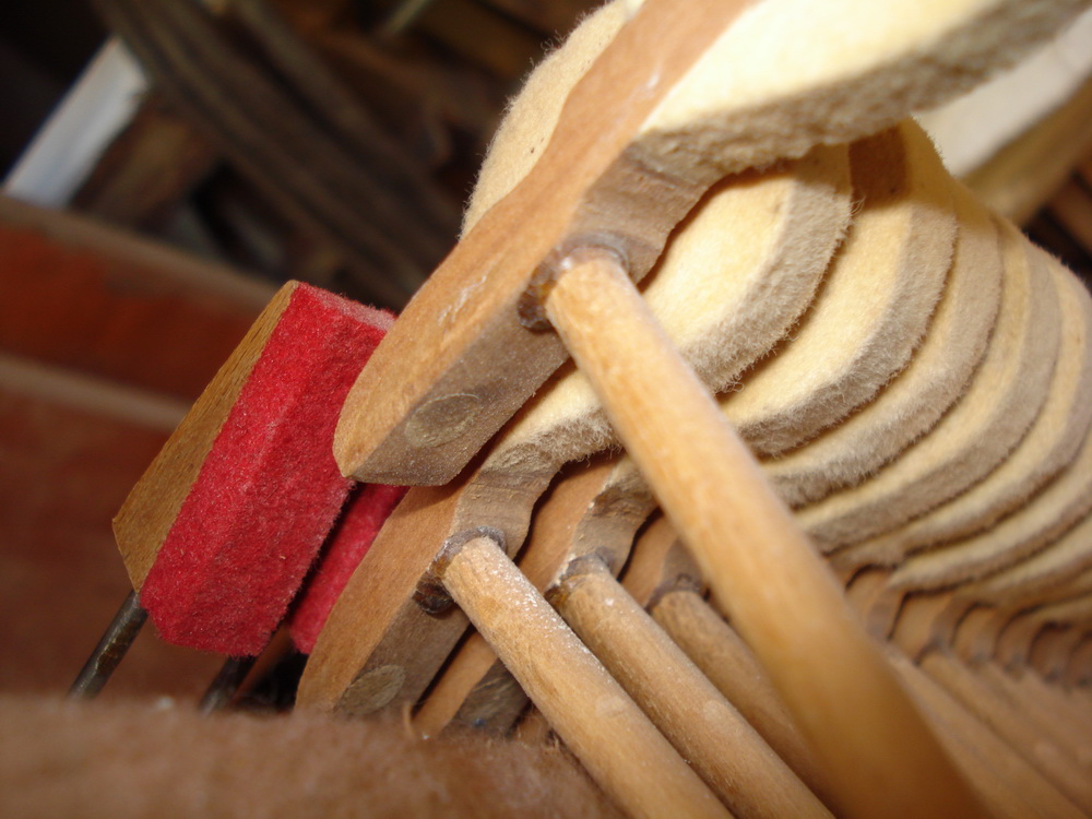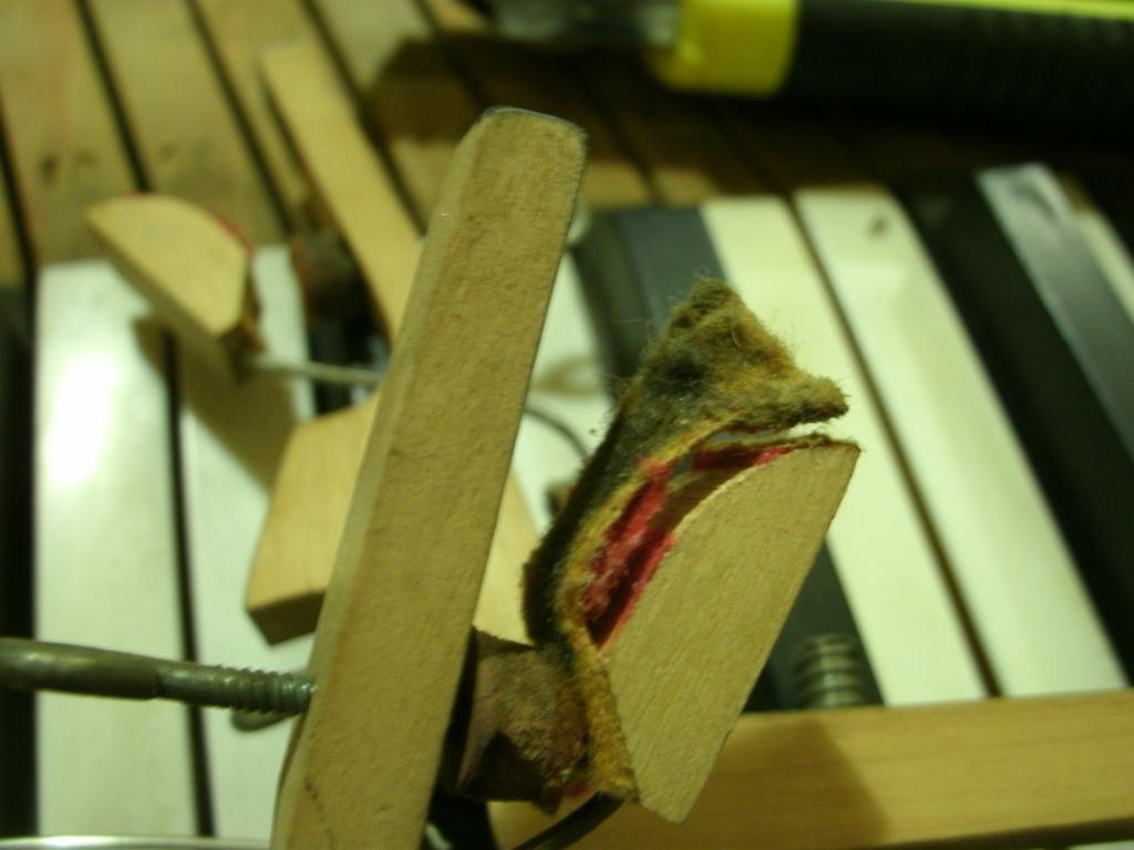 после процедур внутри механики(там еще была штифтовка шпилера, замена кожи и фильцев съеденных, надо сделать недостающие детали , склеить гаммершиль) вставляю лейстик под молотки, иначе механику не вставить.