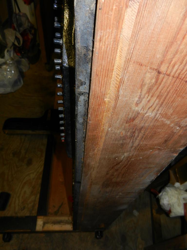 Ну да задач еще решать много. Прежде всего должен сказать, что футор потрясающий . Еще не смотрел подробно снизу, но одно то, что ноги не оторвались, уже достойно уважения. Рама снизу лежит плотно, что тоже удивительно. Басовый штег не лопнул на шранке и весьма сложной формы. Мостик треснул в паре мест. Такие трещины и на звуке особо не скажутся Ужасно смешно, что когда поставили пианино на бок, наш пёс стал жадно вылизывать клей на ВБ - вот какое качество было ! Вирбельбанк, как видим, отошел в дискантовой части. И его закрутило, что стало видно на плоском столе.