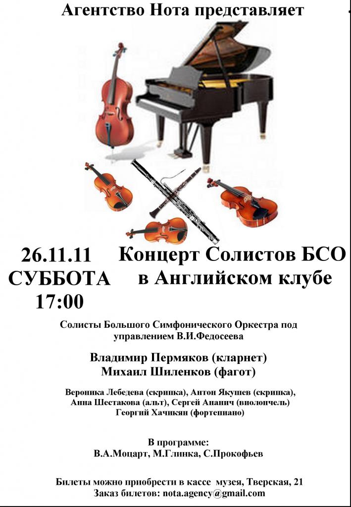 Рады пригласить вас на Концерт Солистов БСО (Большого Симфонического