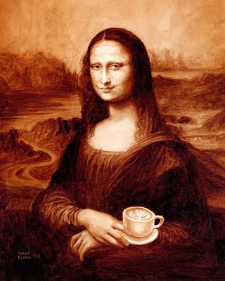 Пока не занималась поисками, но встретила любопытную информацию о Карен Эланд (Karen Eland), которой понравилось рисовать картины с помощью кофе. Это копии полотен известных мастеров, выполненные без использования красок - только с помощью кофе. Кстати, во многих картинах заметите дополнительную деталь - чашечку (или кружку) кофе