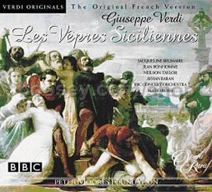 Как известно эту оперу Верди написал для Парижа на французском языке. Но несмотря на это итальянская версия все же прижилась больше,нежели французская.И в записях как правило представлена именно итальянская. И тем радостнее было для меня когда я наконец то приобрел редкую сейчас первичную оригинальную версию. Оригинальную версию "Les Vepres Siciliennes" издала Опера Рара,которую кстати не так часто можно увидеть в свободной продаже. Конечно внешнее оформление этого роскошного раровского бокса радует глаз.В буклете очень подробно описана история создания этой французской большой оперы Верди. Даны портреты первых исполнителей.Короче прекрасное коллекционное издание. Сама запись удивила тем,что это не студия,а концертное исполнение,что необычно для Оперы Рара. Несмотря на наличии апплодисментов,звук очень хороший,полнокровный,сочный.Все краски оркестра и вокальные нюансы переданы отлично. Запись была сделана BBC в 1969 г. в Лондоне в Театре Кэмден.Дирижером был очень известный профи по Верди Марио Росси. Росси знает и хорошо чувствует стиль Верди и понимает специфику звучания французского текста.Отсюда и вполне не совсем обычное звучание этой оперы. Конечно французский язык придал музыке Верди известную пикантность и шарм.Местами слышалось эхо французской оперы с ее томностью и меланхолией. Вокальная сторона записи весьма интересна,хотя и записаны певцы не столь известные. Главного героя оперы зовут Анри.Его поет Жан Бонномм.Не сказал бы,что меня впечатлил его вокал.Звучал он слащаво и слишком лирично. Герцогиню Элен пела Жаклин Брюмер.Все труднейшие стороны партии она преодолела блестяще.Особенно прекрасно она исполнила знаменитую сицилиану Merci,jeunes amies. Ги де Монфора пел Нельсон Тейлор.Интересный голос,богатый тембрально.Великолепно звучал в большой арии 3 акта. Прочиду исполнил Эян Баран.Совершенно не известный мне исполнитель.Но пел очень интересно и голос у него роскошного тембра. В целом вокальная сторона в плане исполнения очень достойная.И есть возможность познакомится с ранее не известными исполнителями. Учитывая,что записей этой оперы крайне мало,наличие такой интересной оригинальной интерпретации не должно пройти мимо всех любителей музыки Верди. И спасибо Раре за издание французской версии.Поэтому я всем рекомендую эту запись кто еще с нею не знаком.