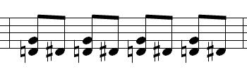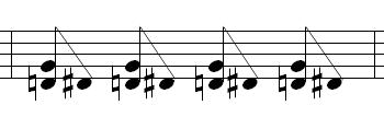 Наберите такт как на картинке. Затем инструментом Beam Width (предпоследний на спец. панели) уменьшите ширину вязки до толщины штиля, затем инструментом Beam Angle (восьмой с конца на спец. панели) сведите длину каждого правого штиля (у Ре-диез) к нулю. Это все.