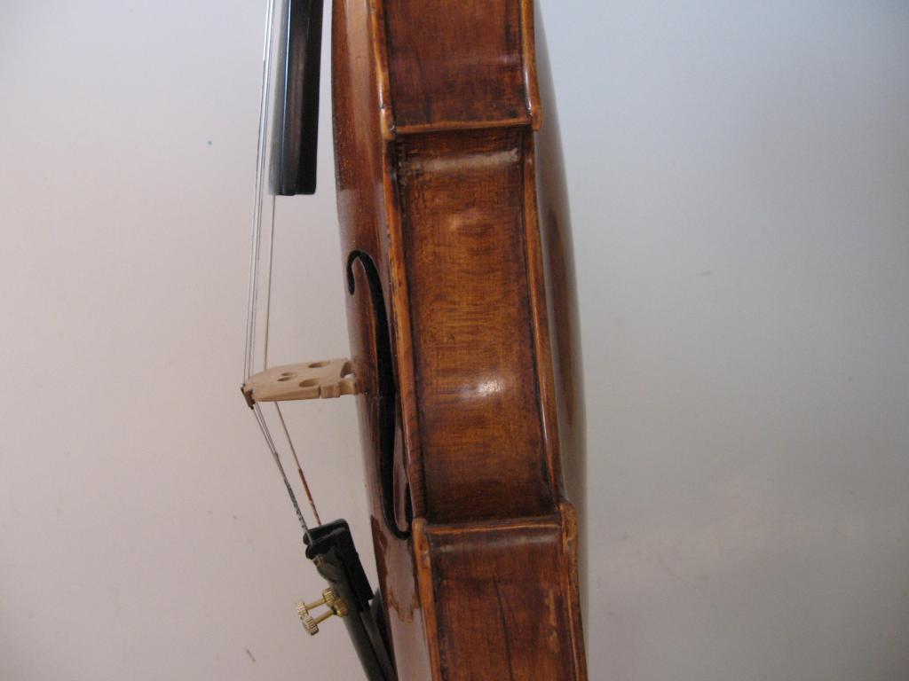 Про цены я не знаю, но думаю, что эта скрипочка должна стоить не меньше 5000 баксов. А то что нижняя обечайка подпорчена, то так уж и быть. во всяком случае она показывает, что все остальное в инструменте ценное, а не дешевая подделка или полностью перелакированный инструмент со снятием грунта, что не есть хорошо.