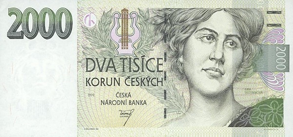 Портрет Эммы Дестиновой можно увидеть на банкноте в 2 000 чешских крон