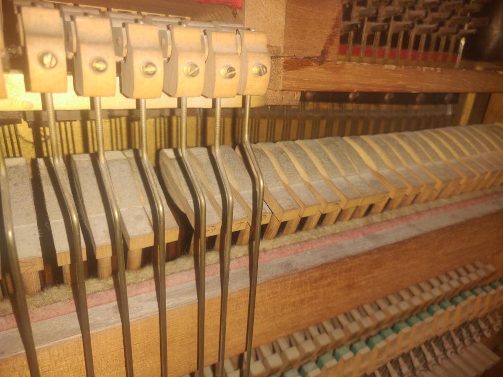 Нужно было снять верхнюю раму и снять хорошо механику. Правда видно кое-что : поеден молью. Демпферпушель тоже. Сомневаюсь, что настройщик способен его настроить. В таких случаях пишу или говорю - без капитального ремонта дальнейшая эксплуатация невозможна.