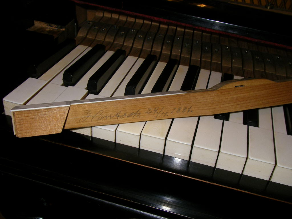 Последние лет 20 на пианино практически не играли. Настройщик, приходивший (последний раз) году так в 88-м, говорил, что инструмент хороший. За это время, в принципе с ним ничего особенного не происходило, но и сказать, что оно содержалось в хороших условиях, нельзя: влажность в комнате никак не поддерживалась, некоторое время внутрь ставилась банка с водой, а сверху и вазы с цветами, от солнечных лучей особо не защищалось, иногда дети барабанили...