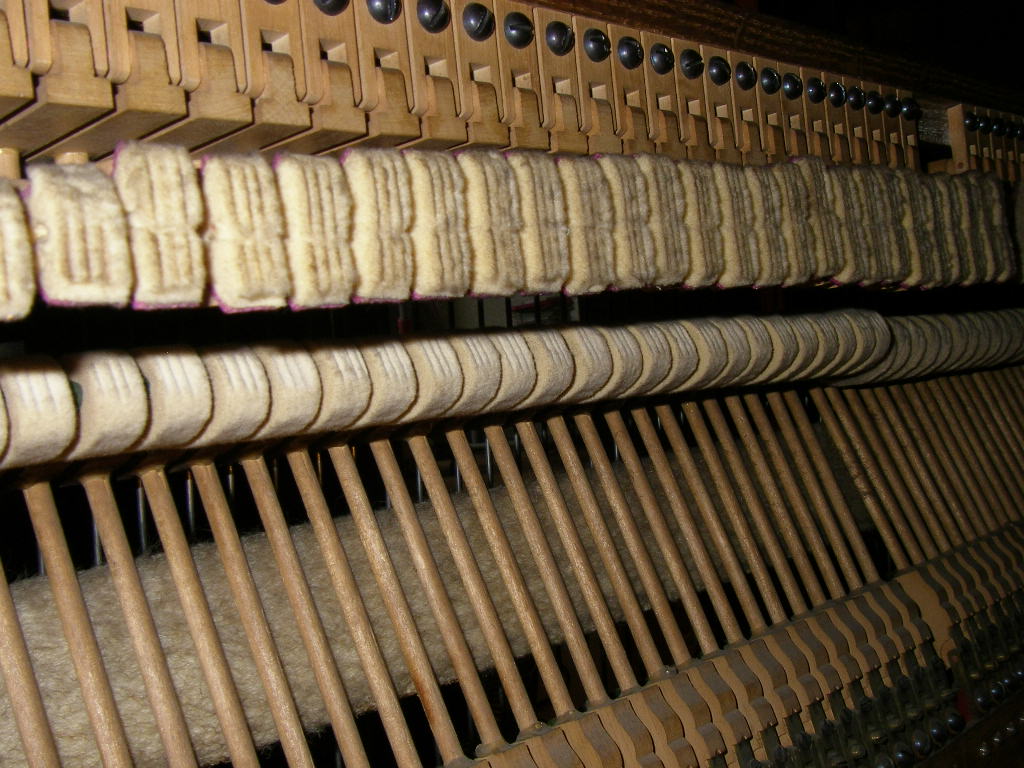 Я про крепление механики посередине пианино, его нет, а это наверное влияет на положение демпфера. на фото, которые выложил Arthur виден этот крепеж (выглядит как гвоздь, согнутый на конце колечком)...