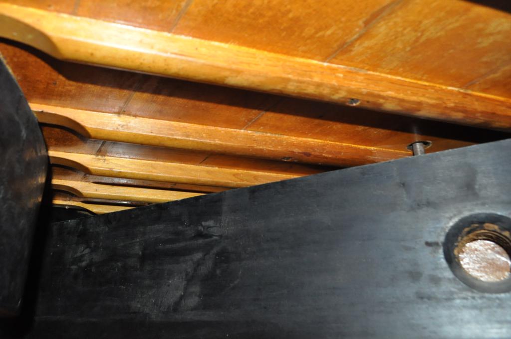 Почему я заговорил о ремонте - обратил внимание, что моль все-таки добралась до фетра над клавишами (на фото). Если он несет не только декоративную функцию то его надо будет менять. И еще меня смущает люфт у клавиш (кажется, что он слишком большой) и хорошо слышимый стук при возврате клавиш в исходное положение.