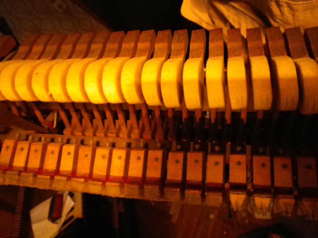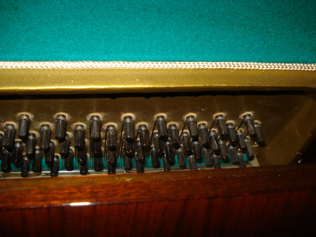 Колки плохо сняли , см. у меня. Пианино неплохое, был ремонтец не так давно сравнительно. Подизношенное. Вызовите настройщика. Звук и колки надо проверить на месте. Хороший ремонт внутри - 30- 80 тыс, в зависимости от целей.