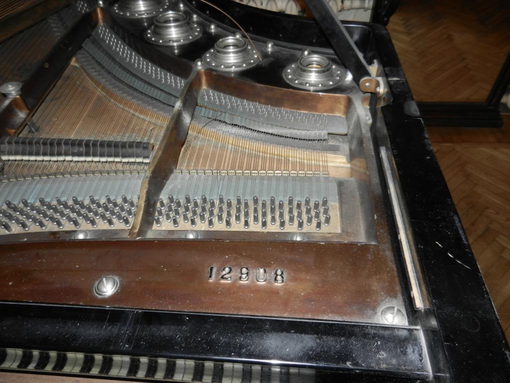 Да, еще для определения года рождения фортепиано надо найти номер. Он бывает на раме, нарисованы краской, выбитый на дереве стенок(у пианино) или на деке, может быть отлит на раме. Бывают таблички , даже съёмные.А бывает, их не найти.По этим номерам в каталоге можно найти примерный, иногда точный год выпуска.