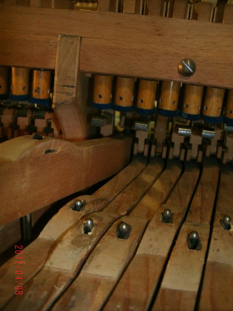 Вообще мензура струн у Ратке небрежно ставилась.В манерет19 века пренебрегали частой сменой диаметров НО! Функционально всё оправдано , кроме 3-4 октавы..Басы все, кроме пары замененных целы. А когда просмотрел , что творится в 4ой октаве, сразу понял Прокофьева - справа налево от ля4ой- 4 хора 0.82, а затем 12!!! хоров 0.85 !