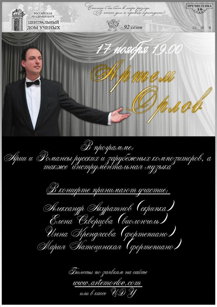 Концерт пройдёт в Центральном Доме Учёных (ул.Пречистенка, 16), начало в 19.00