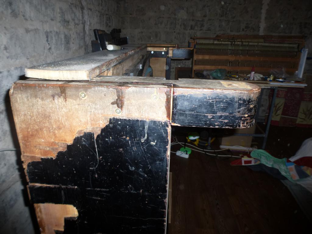 Опасные трещины на верхней обвязке футора ( с обр. стороны пианино). Самым серъёзным образом исследуйте их. Футор должен быть очень прочным.