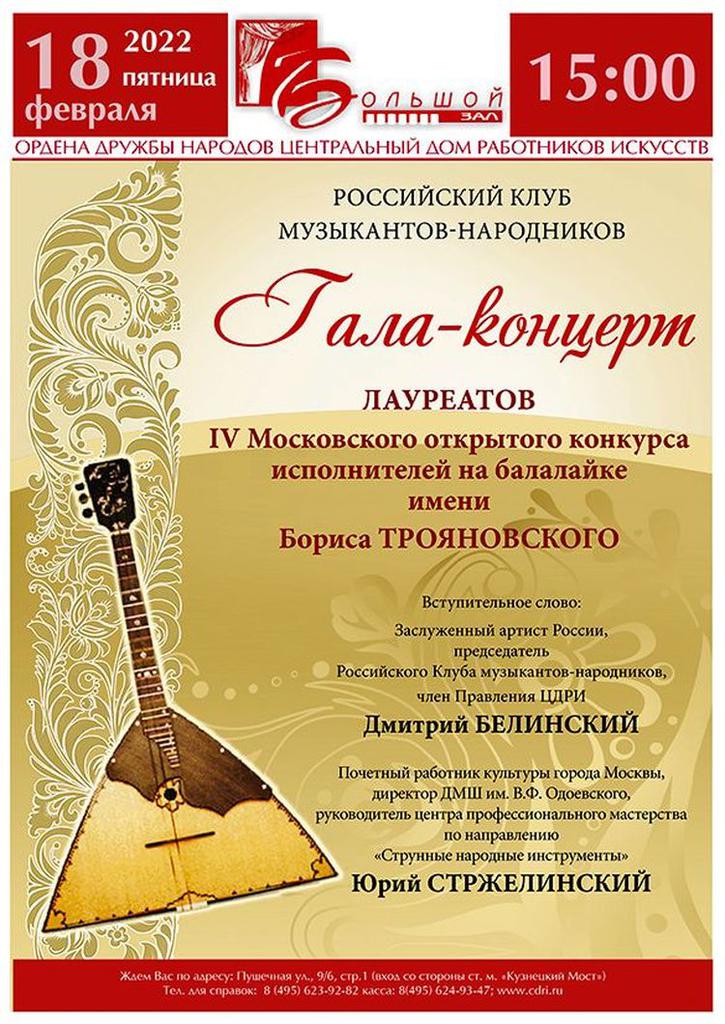 IV Московский открытый конкурс исполнителей на балалайке имени Бориса Трояновского. Гала-концерт лауреатов конкурса.