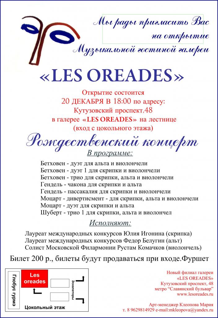 Мы рады пригласить Вас на Открытие музыкальной гостиной галереиLES OREADES: Рождественский концерт