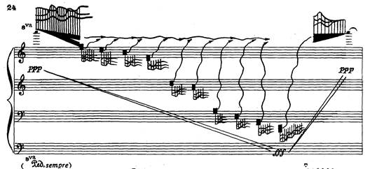 В этом же году была издана та самая, потрясшая меня, Вторая соната для скрипки и фортепиано. Помню, вышел я из магазина на Арбате, открыл ноты прямо на улице и увидел, что не понимаю основные алеаторические обозначения в тексте. Например, такие :