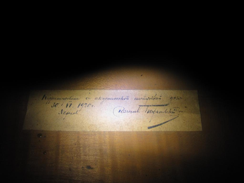 Уважаемые дамы и господа. Продаю инструмент. Полноразмерный (длина струны от порожка до подставки - 70 см, длина корпуса по спинке - 77 см). Достался по наследству. После полной реставрации (мастер Никифоров Виктор Иванович - Москва). Струны, подставка, струнодержатель, шпиль - все новое (2009г). В дополнение чехол. Есть 2-а смычка (оба не очень). Год создания: 30.06.1920 (внутри инструмента есть наклейка с точной информацией о дате и мастере). Место: г. Харьков Мастер: Вячеслав Барановский Струны: THOMASTIK Струнодержатель: Wittner Подставка для струн: SUPERIEUR DESPIAU FRANCE ** Шпиль: прямой, облегченный карбоновый Цена: обсуждается, пишите, пожалуйста на эл. почту 7656538@mail.ru
