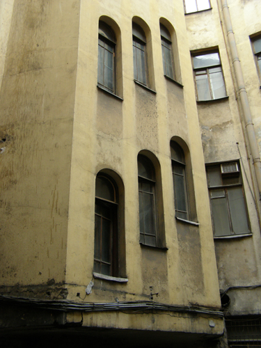 Всем дом хорошо известен. А вот его двор. Метра два в диаметре - классический Питерский колодец. Тёмный, страшно замусоренный внизу и ...