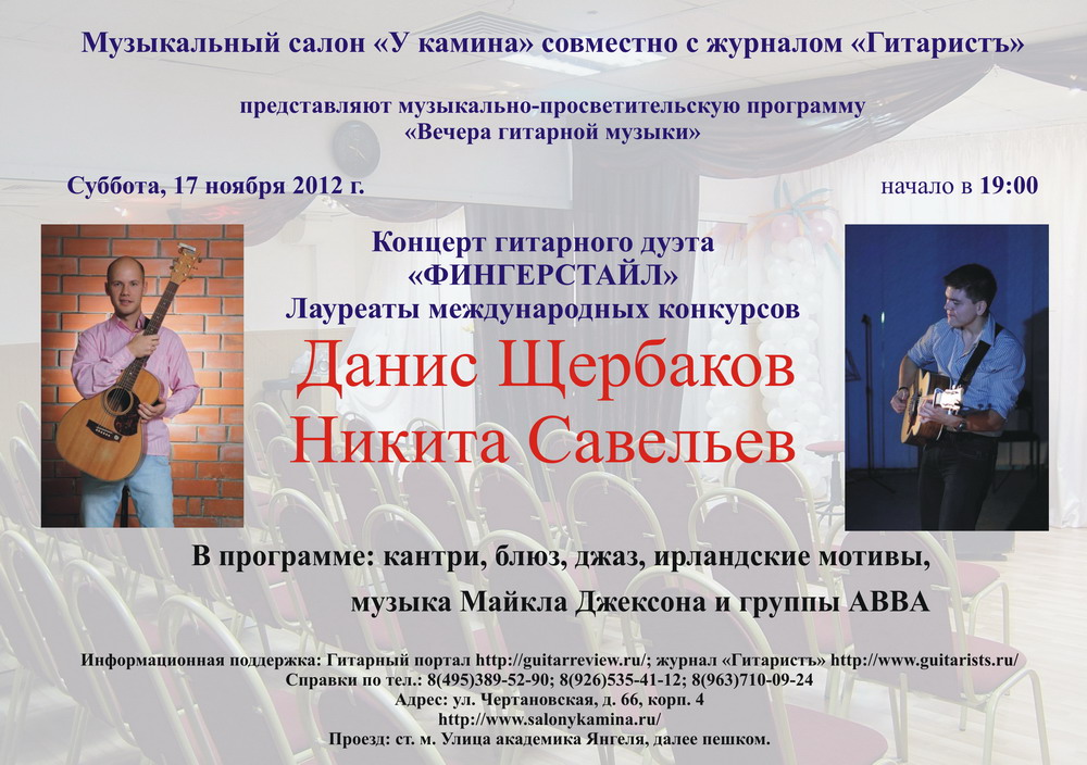 Концерт дуэта гитаристов "Фингерстайл" 17.11.12, 19:00