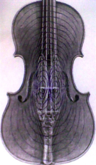 Есть еще и другой вид колебания деки: от качания подставки с ножки на ножку. Здесь дека раскачивается так: правая часть идет вверх - нижняя - вниз. И наоборот. Узел колебаний находится по линии фуги, т.е. между ножками подставки. Ножки подставки (а вместе с ними и дека в этом месте) колеблются не с большой амплитудой. Самая большая амплитуда дальше, ближе к эфам. Все как у струны. Вот поэтому мы так долго разбираем струну. Не понял струну - нечего лезть в деку.