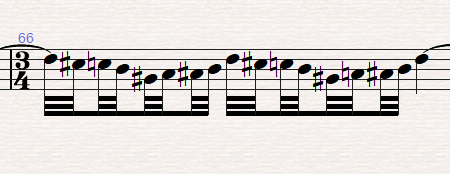 т.е. здесь существуют вторичные вязки двух уровней: Первые 4 ноты разделены по две и связаны двумя ребрами, однако эта группировка связана со следующей одним ребром. Сибелиус же предоставляет единственный вариант с одним ребром: