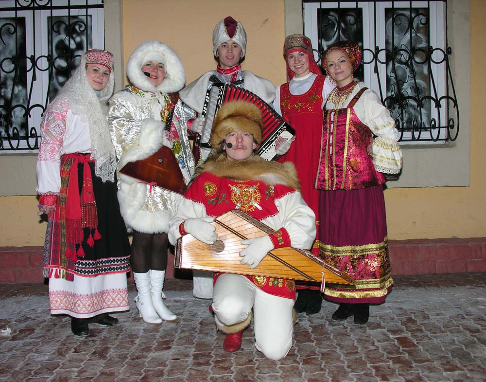 Теперь о концертах. Наш "ИВАН-ЧАЙ", - универсальный и уникальный коллектив артистов, сотав от 3-х чел. Работаем "вживую" и "под минус", в помещении и на улице(в том числе и зимой в зимних, расшитых мехом костюмах со специально предназначенными для этих целей инструментами).