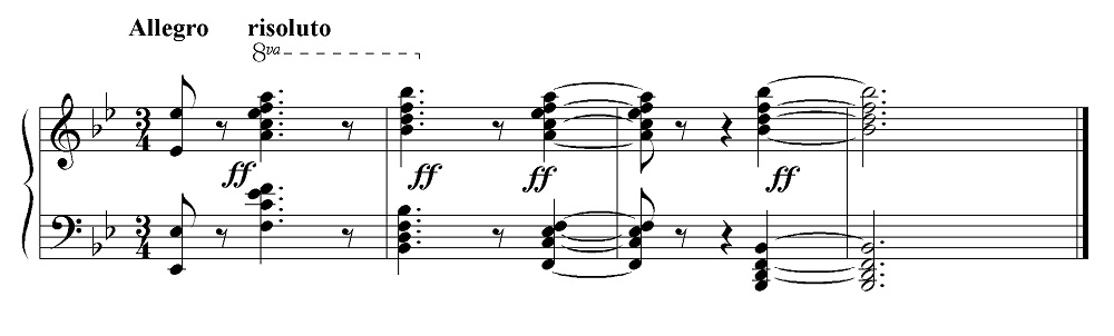 В сложных ритмических случаях, о которых говорят все цитируемые мной авторы, умение читать нотный текст дает возможность проникнуть в тонкий ритмический замысел композитора всем свои телесно-ментально-творческим существом. Скажем, привлекшее внимание исследователей в связи с обсуждаемой проблемой, начало увертюры «Манфред»: