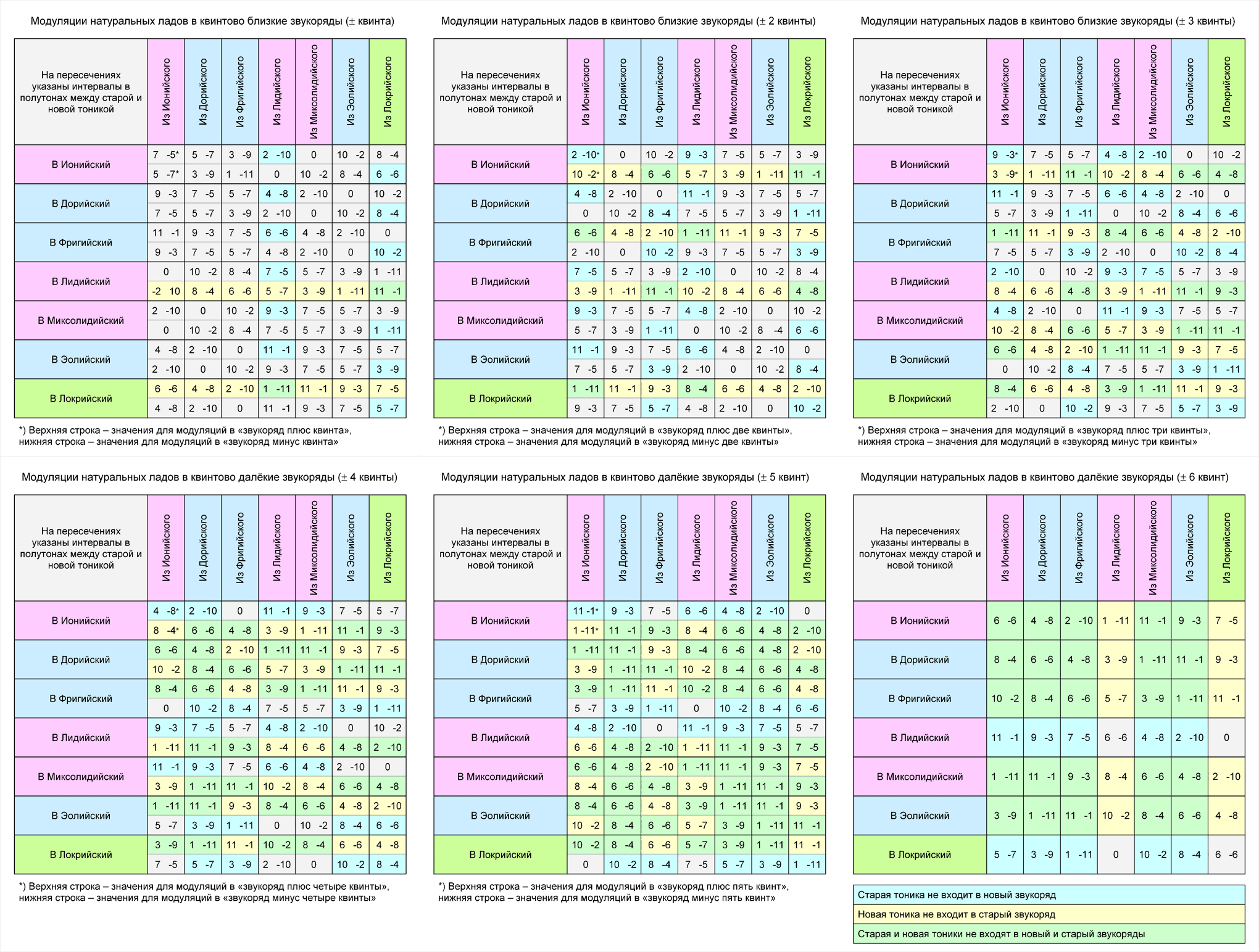 Должен сказать что моя таблица не даёт ответа на то как осуществлять модуляцию, она лишь описывает все возможные варианты откуда/куда и налагаемые на эти варианты ограничения в перемещении тоники и изменении звукоряда (по квинтовому кругу).