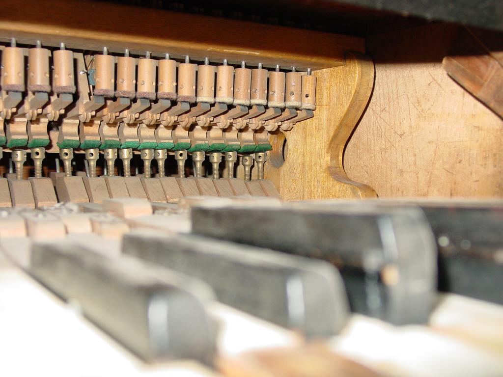 Увы, Вы правы. Вытащил механику. Переделана практически виртуозно, но как срабатывает, пока не могу посмотреть в деле. Но стоечки хилые, рычаг на клавише явно недотягивает, значит, возможна химия в регулировке. И ужасно перевешаны клавиши, куча свинца, местами трещины, поэтому механика весом с концертную. Никаких маркировок, кроме как выше приведённых, на одной клавише внизу подпись нечёткая, то ли кириллице, то ли латиницей. Да, на клапе сверху странно, что про принца Альберта по английски, а внизу герб по французски-это понятно. Дека подпёрта футором. поэтому со звуком никак. Замечательны столярные работы, в гораздо лучшем состоянии, чем у Лихтенталя в музее Глинки.И дека с оч. низкими рипками, таких практически не упомню.