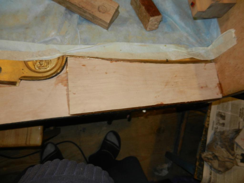 И накладка под басы, для их точной устаноки, с вклейкой еще и штифтов, что должно быть весьма точно, поскольку по струнам выставлять молотки и демпфера. Это удалось, даже демпфера практически не креповал.