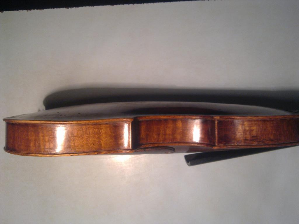 И где вы здесь увидели следы Маджини? Эфы почти круглые,тогда как у маджини они всегда вытянутые, ус достаточно тонкий и бледный, что совершенно не характерно для старых итальянцев, своды дек вообще , с точки зрения мастера, не выдерживают никакой критики. Скрипка сделана клином.. А уж головка к Маджини отношение имеет только названием...Скорее ее при реставрации приделали... Из того что было... Что касаемо лака.. Разве не видете что лак такого цвета, и блестящего качества, никогда у итальянцев не был, а уж Маджини, который покрывал свои инструменты вообще темно-коричневым лаком, о нем наверняка и не знал! Так что это такой-же брешианец как Чингиз-хан англичанин!!! Что касается феникса, то такие лепили раньше на все немецкие бытовые вещи типа диванов и стульев... Это так называемая давленка....