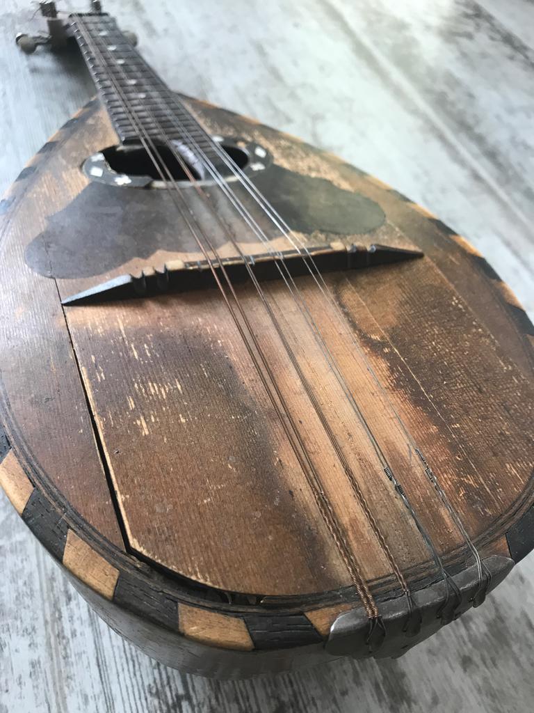 На трофейную не очень похожа, скорее была куплена в частном антикварном магазине в Германии. По форме первая - неаполитанская, вторая - португальская. На этом инструменте я начинал свое обучение музыке. В послевоенные годы мандолина была в тренде.