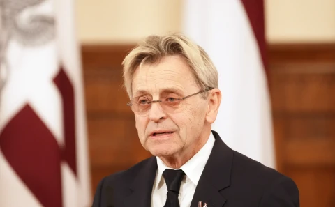 Вступительную речь он произнес на латышском языке, хотя и признал, что не говорил по-латышски как минимум 50 лет.