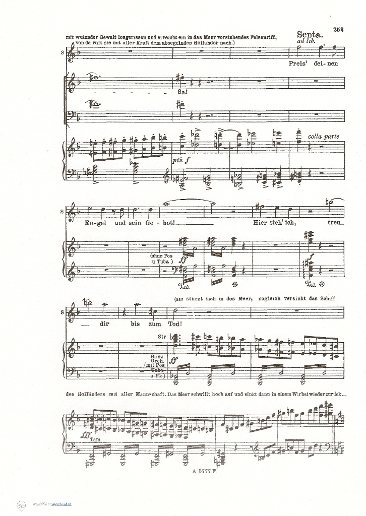 Вывод - 16 примерно лет Сента воскресала (возрождалась) с Голландцем на сцене, без мотива освобождения )), затем Вагнер изменил финал, по всей видимости окончательно и безповоротно, и Сента с Голландцем уже возрождалась под прекрасный жизнеутверждающий мотив.