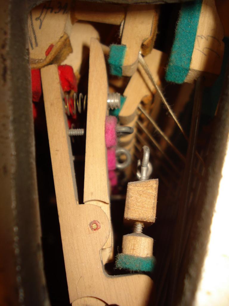 Варианты с добавочной пружиной к шпиллеру встречается в достаточном количестве. Меня такие открытия радуют. Чувствуешь себя первооткрывателем. Я сейчас делаю маленьке пианино, с подводной лодки, так там тоже подобное устройство (более часто встречающееся и традиционное - петелька от контрфенгера, через дырку в шпиллере, к пружине на шпиллере).