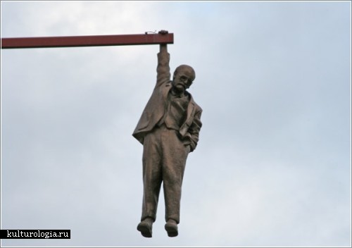 Скульптура "Подвешенный человек", изображающая висящую фигуру Зигмунда Фрейда в полный рост.