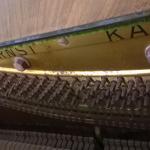 Добрый вечер! Разрешите представить Вам удивительного товарища- поразившего меня до глубины души. С виду- апсолютно потертое, угробленное(Цветок с верху жил, шпон облез, дедушка-хозяин решил его "освежить и морилкой залил бока с разводами и потеками, мыши жили дружным семейством- утянули половину бентиков, клавиши некоторый молчат, моль пировала вместе с мышами- демпфера взорваны, молоточки тоже. треснула дека.)Но!!!!!!! При всем несчастном виде меня поразили колки- впечатление- что их никто не бил никогда, басовый штег без единого намека на трещинки! Расскажите пожалуйста о нем, Что это за существо? HAAKE. Ни номера, ни года выпуска нигде не заметила. Какая то переходная модель? Последний раз настраивали в 1986г. Есть у него шанс? Есть человек, который вызвался его реставрировать.