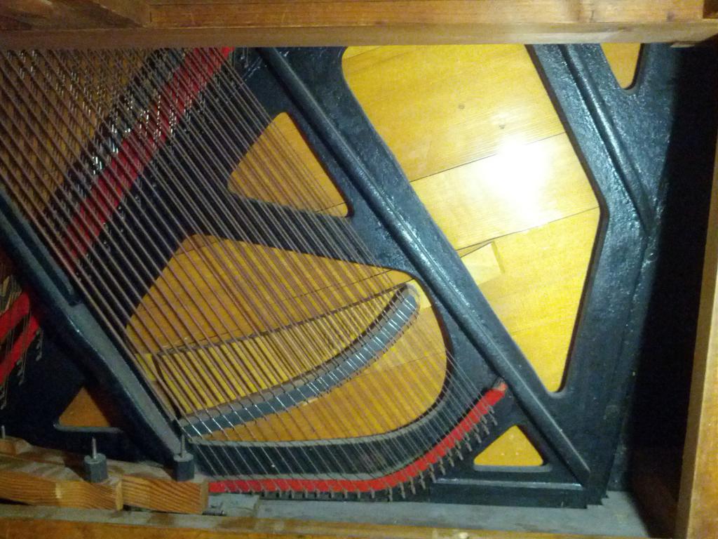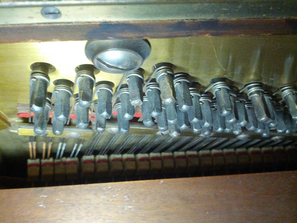 В общем, сейчас, прежде чем хоть что-то делать, я решил обратиться к вам. Так уж вышло, что инструментом этим я очень дорожу и хотел бы его восстановить. Не смотря на не слишком качественное глушение струн, мне нравится то, как он звучит. Мне нравится его клавиатура, пусть она не такая глубокая, за то мне кажется, что иногда при игре она создаёт эффект как у рояля с двойной репетицией. Мне нравится, что оно было произведено в эпоху, когда искусство ценилось больше, когда при производстве в каждый инструмент вкладывался ручной труд и дух мастера. Мне нравится даже как он пахнет Я понял, что прежде чем хоть кого-то к нему подпускать, нужно самому разобраться в предмете. К примеру, в сети я нашёл видео "об укреплении вирбельбанка", в котором некто maxim_tuner вывинчивает вирбели, засовывает в отверстие кусок картона, а затем завинчивая обратно, приговаривает "пока я его завинчиваю, колок раскалился до бела, ну, туда ему и дорога!". После чтения данного форума, у меня такое видео вызывает сомнения. Другие же говорят, что вирбельбанк нужно обязательно менять. Подскажите пожалуйста, насколько у меня всё плохо? Какие есть варианты работы с ним? Пожалуй, в первую очередь это вопрос к пользователю , который на форуме активно защищает обердемпферы, от которых многие плюются. Читал про замену вирбельбанка. Любопытно узнать стоимость такого удовольствия (хотя бы порядок цифр), а так же показания к замене. В каких случаях можно, допустим, заменить колки, а в каких нужно менять колковую доску? В общем, вот. Прилагаю материалы к этому сообщению.