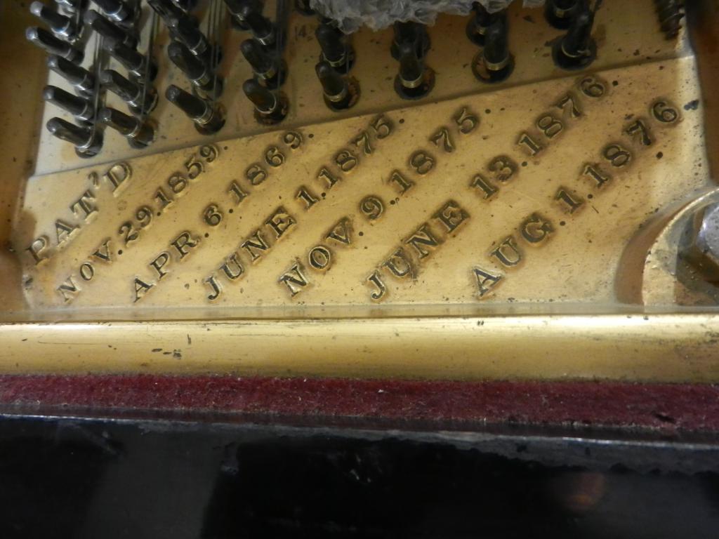 Надписи говорят о том, как много патентов у стейнвея, и их даты, оба колокольчика, металлическая трубка- гаммербанк, видимо цельный футор, единый загнутый теноро-басовый штег.. отборное литье.. и т.п.