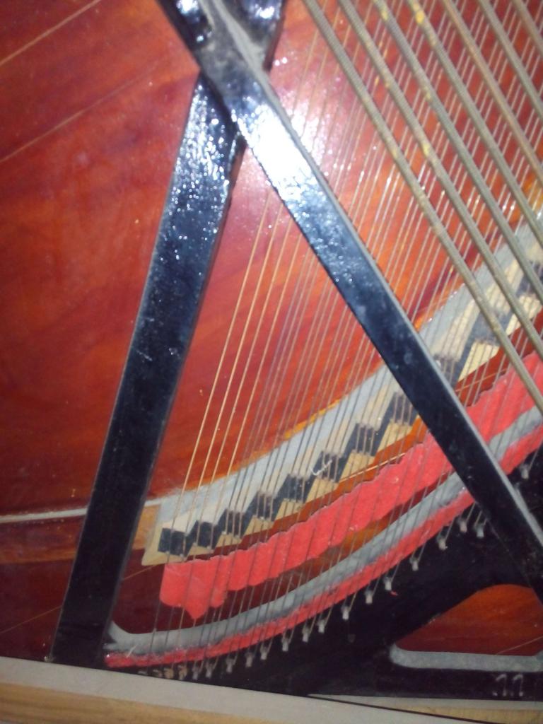 Здравствуйте уважаемые форумчане! Большая просьба к специалистам на данном форуме посмотреть и попробовать оценить по фотографиям старинное фортепиано. Ни даты изготовления, ни номера я при внешнем осмотре не нашел. Когда-то в середине XX века оно было куплено для мамы, когда она училась в музыкальном училище. Позднее оно практически не использовалось, стояло в одной комнате как мебель и по-моему никогда на моей памяти (с середины 70-х) не настраивалось. Сейчас требуется решить, что с ним делать: на помойку или может быть кому нибудь оно нужно. Может на запчасти кому-то? Еще мама говорила, что у него струны посеребрённые, но мне кажется, что это чья-то шутка или байка такая. Если нужны дополнительные фотографии я ещё сделаю.