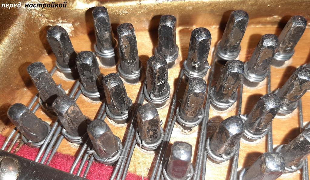 Поскольку инструмент очень давно(более 20 лет) не обслуживался, я согласился с тем, что по крайней мере первый раз, в камертон вытягивать не надо, и ля первой оставили 427 Герц. Проблем с настройкой не возникло, пианино строй держит прилично, звук приятный.