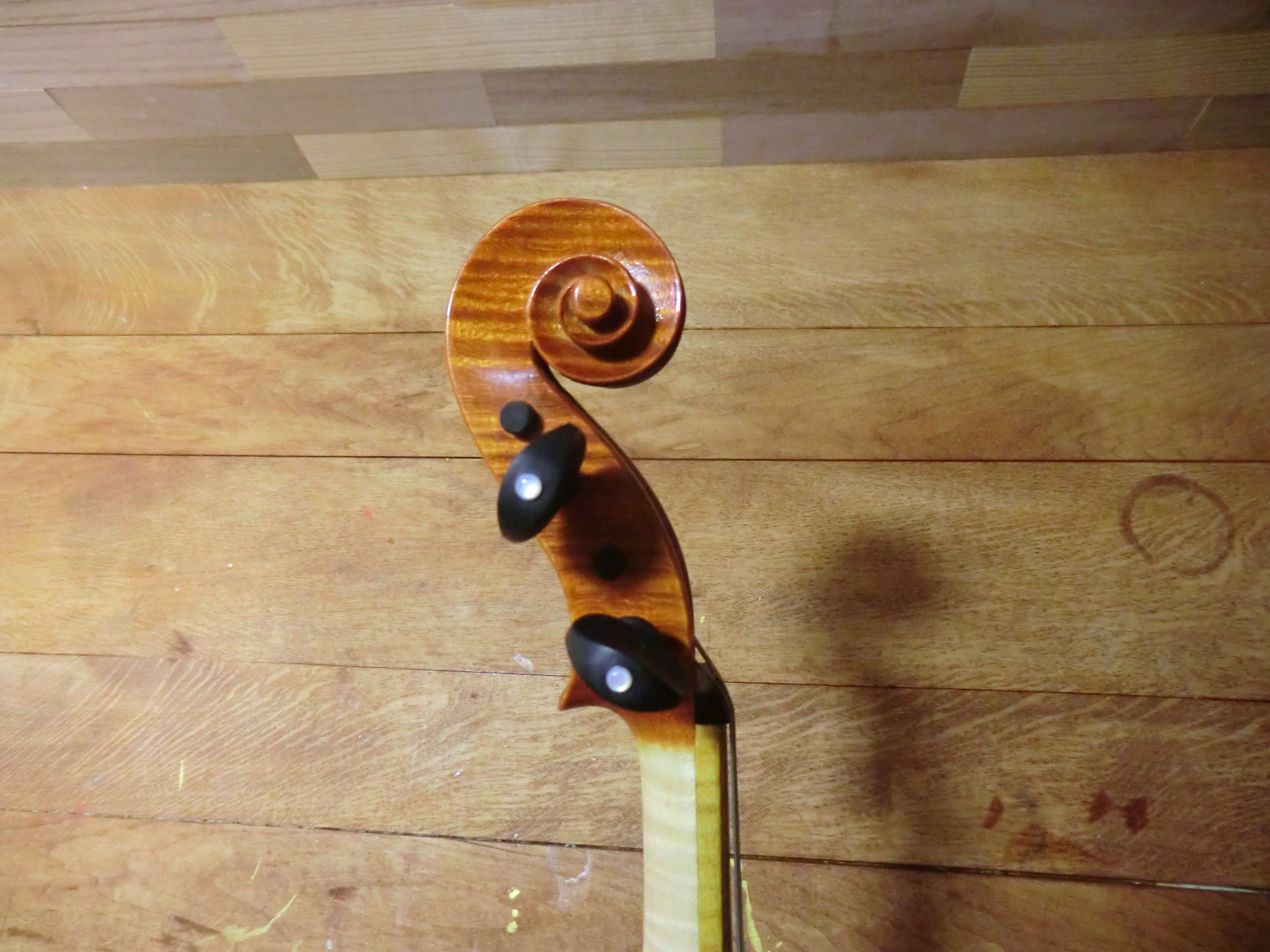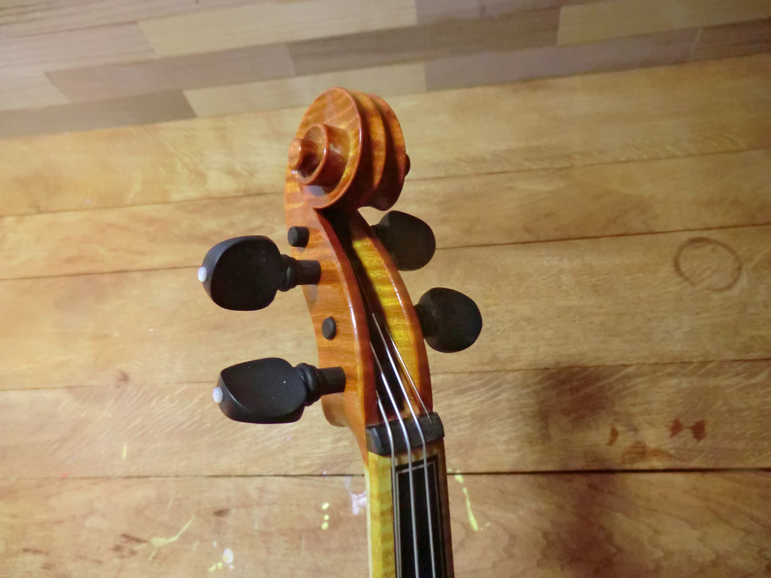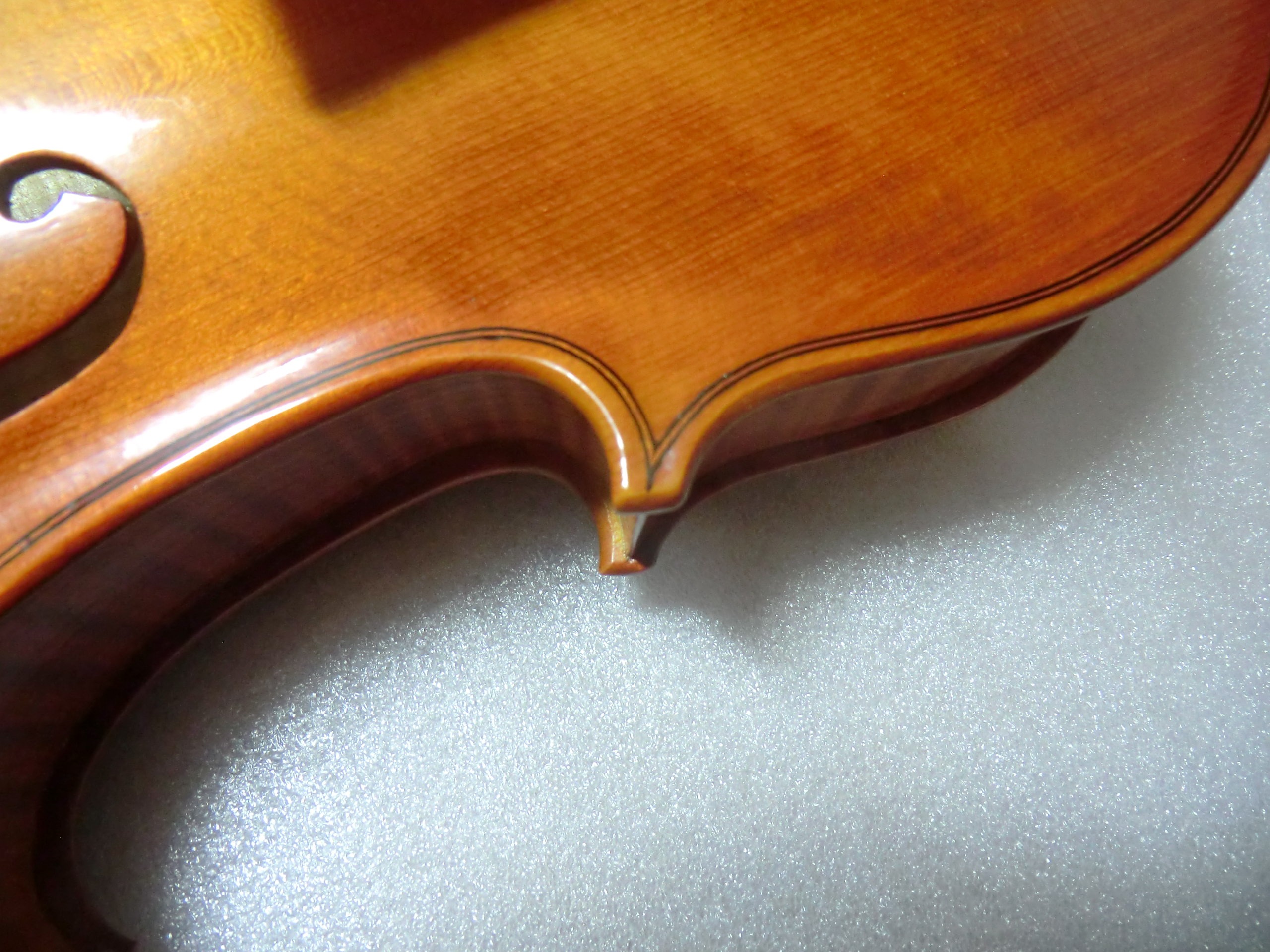 Свежий инструмент, а значит и звук еще сырой. Тембра пока нет никакого, но есть сила в струне Соль и Ре, что вселяет надежду, что после разыгрывания проявится и тембр (обычно не раньше полугода). Думаю, что и с эфами работа еще не закончена. Силы звука они не прибавят, но тембр можно поискать.