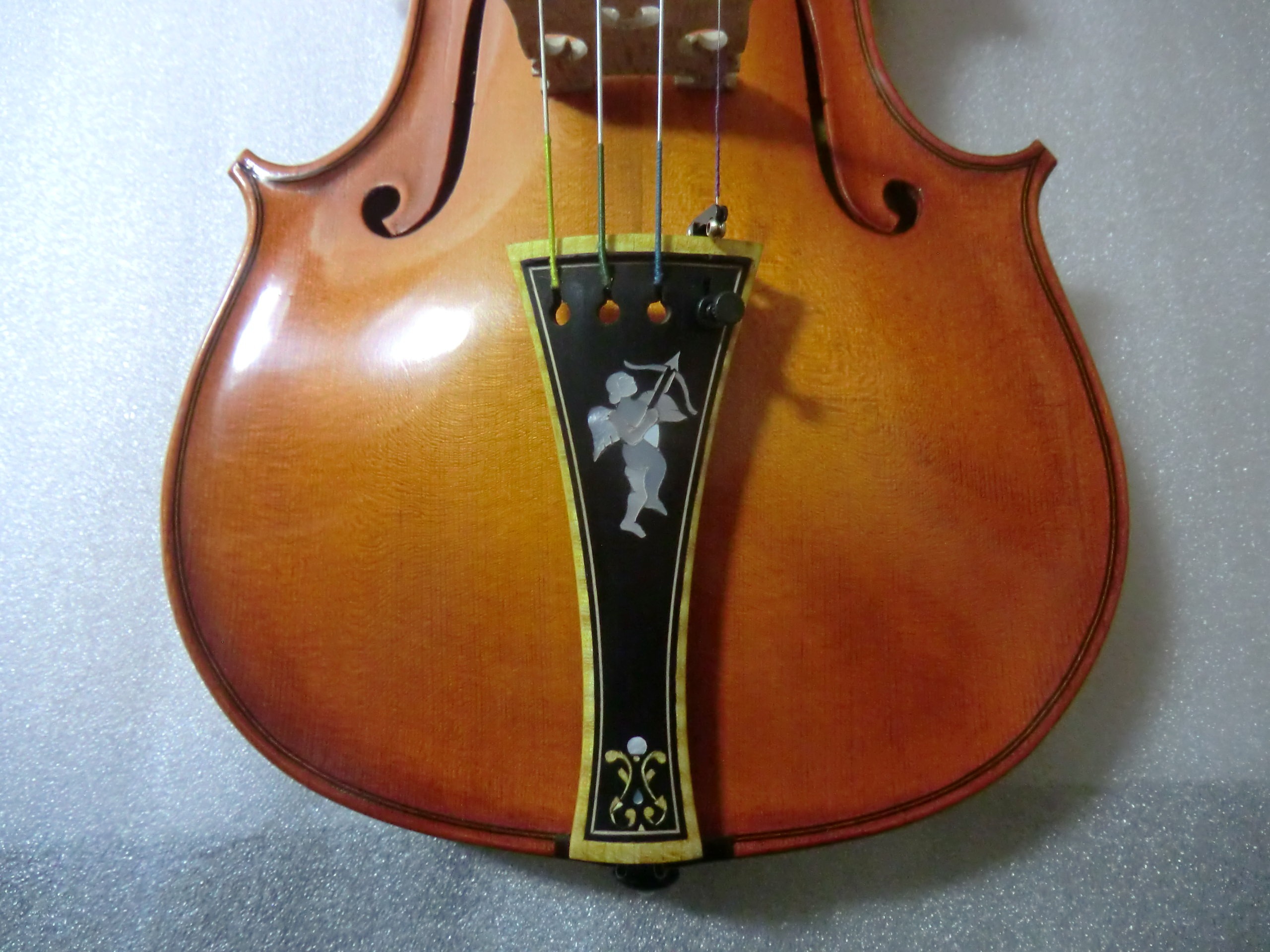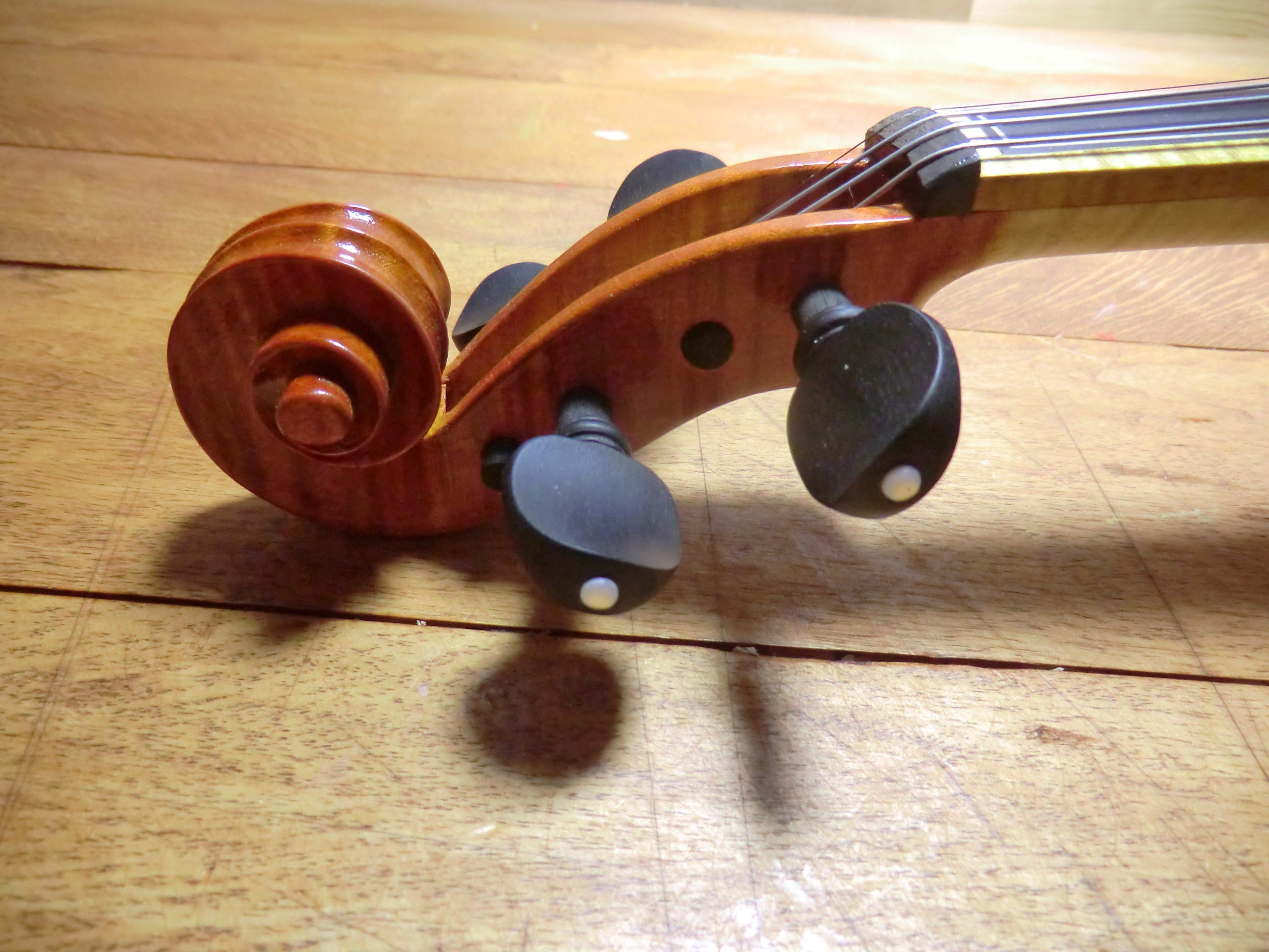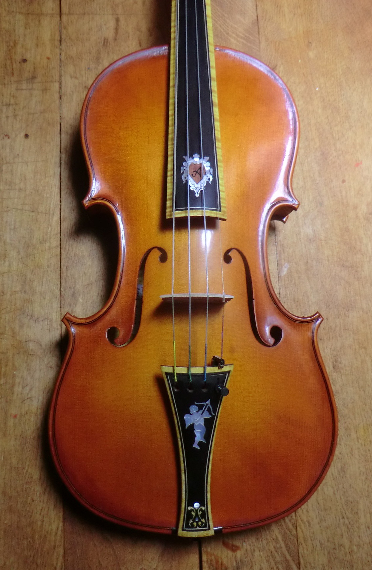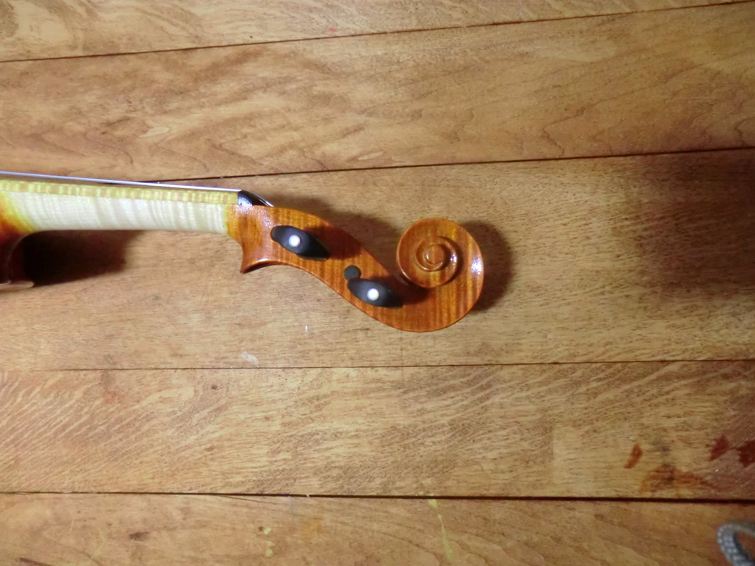 Свежий инструмент, а значит и звук еще сырой. Тембра пока нет никакого, но есть сила в струне Соль и Ре, что вселяет надежду, что после разыгрывания проявится и тембр (обычно не раньше полугода). Думаю, что и с эфами работа еще не закончена. Силы звука они не прибавят, но тембр можно поискать.